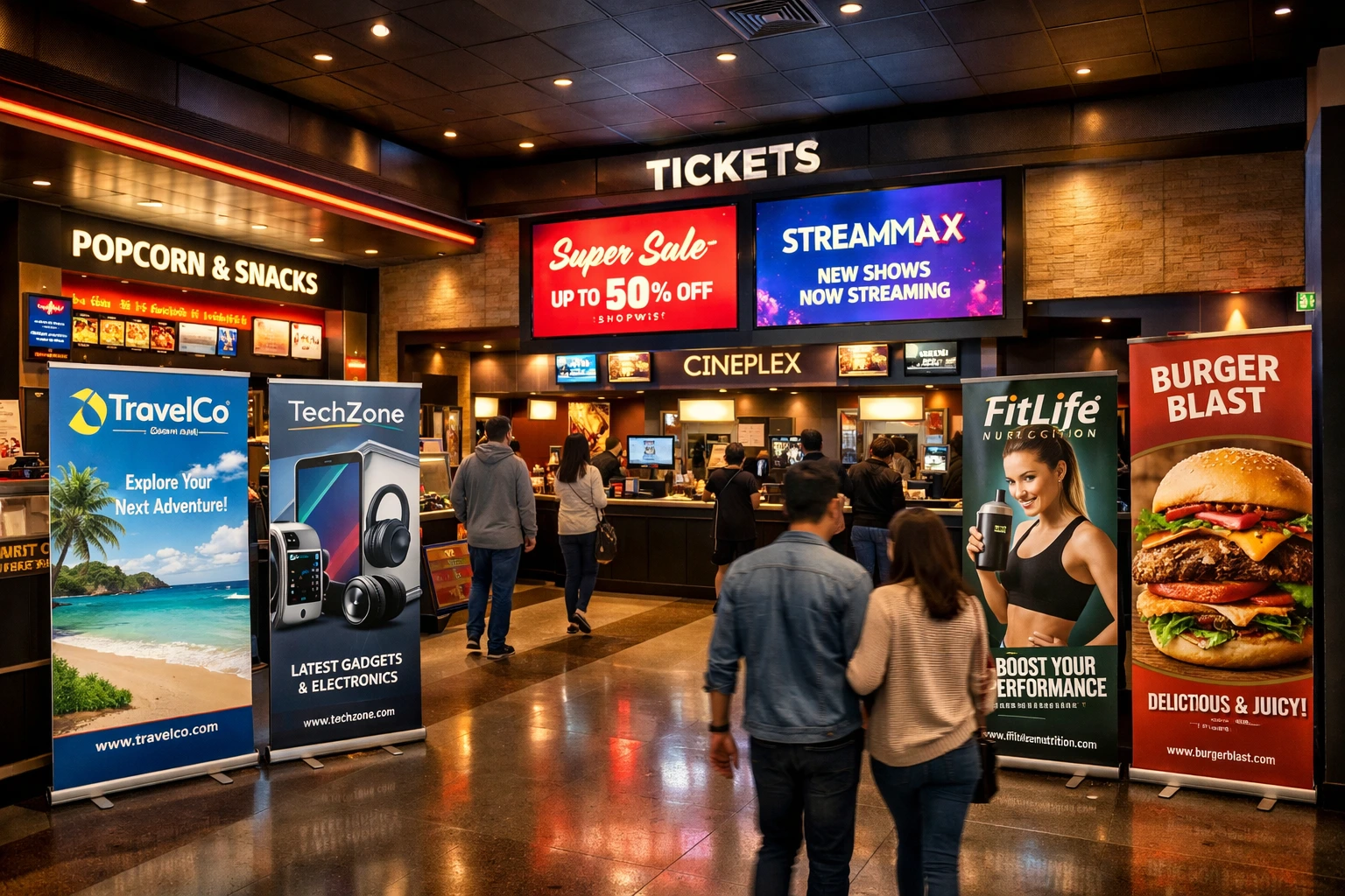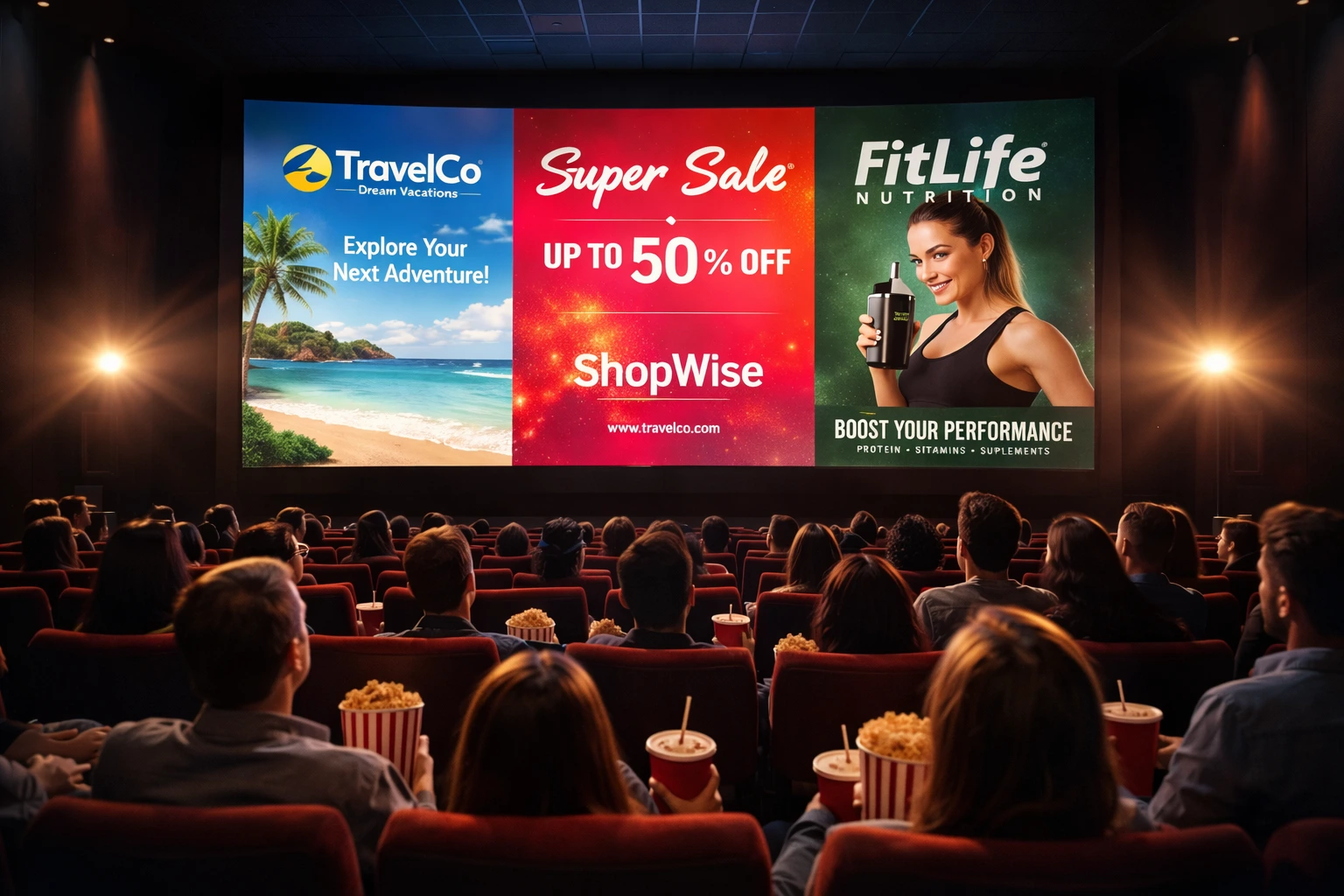 Addwing specializes in cinema theatre advertising, helping brands reach a highly focused and captive audience. With strong theatre networks across Tamil Nadu and partnerships with major multiplexes and digital cinema platforms, we deliver high-impact on-screen and off-screen advertising that ensures maximum brand visibility on the big screen.