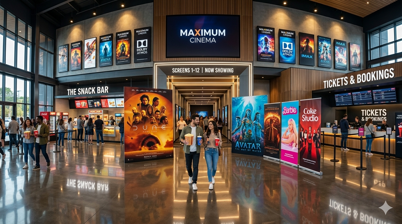 Off-screen advertising transforms cinema spaces into powerful branding zones, allowing businesses to connect with audiences in a premium entertainment environment.